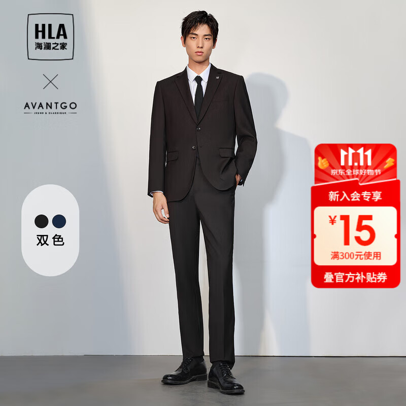 海澜之家(HLA)西服套装男轻商务时尚平驳领套西男秋季 黑色02(西服+西裤) L 175/96B 48B推荐138~150斤
