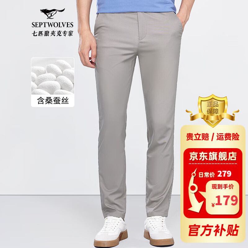 百亿补贴:七匹狼【桑蚕丝】薄款休闲裤男25夏季新品弹力冰感男裤修身商务西裤子 003(中灰)-薄款桑蚕丝 34