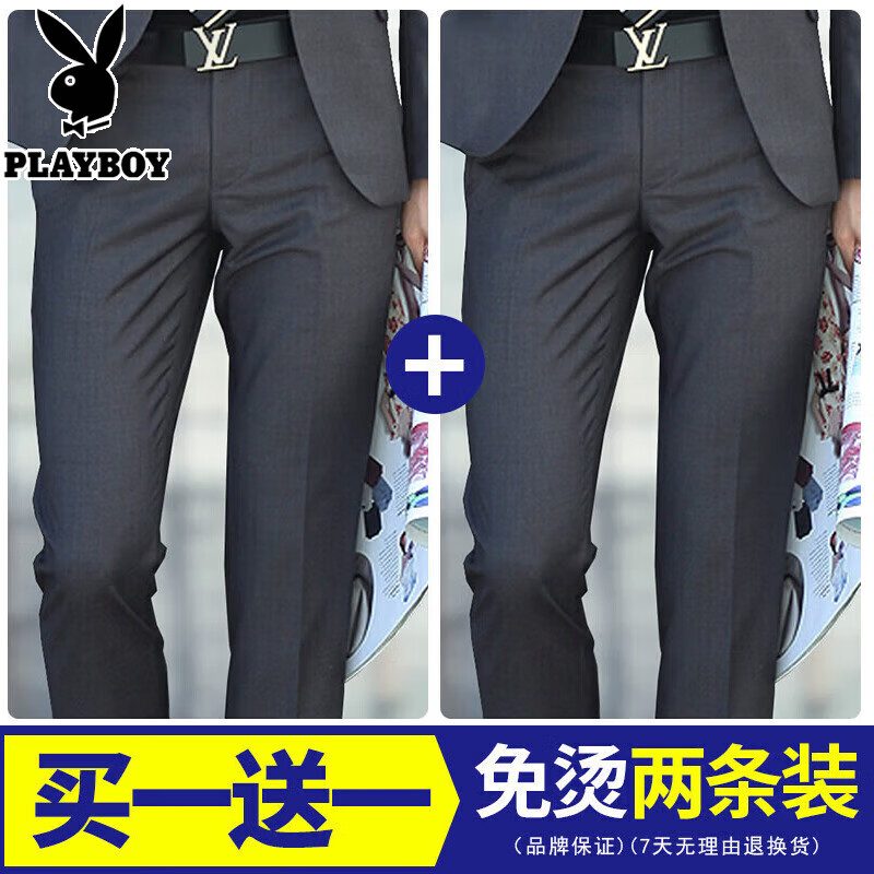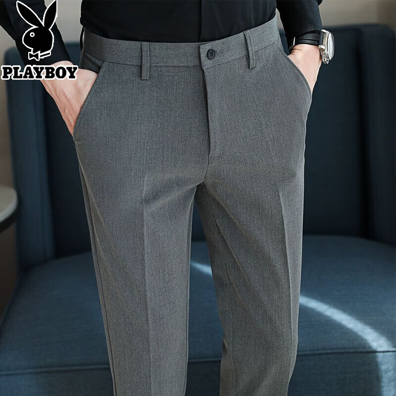百亿补贴:花花公子(PLAYBOY)男士西裤春秋款修身直筒商务休闲西装裤免烫工装职业正装男长裤子 【两条装】灰色+灰色 36 2尺9