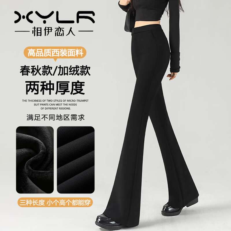 百亿补贴:相伊恋人微喇叭休闲西装裤女秋冬季2025年新款高腰显瘦垂坠感小个子马蹄裤 黑色-秋冬加绒 【高品质-常规款】 L 【适合105-115斤】
