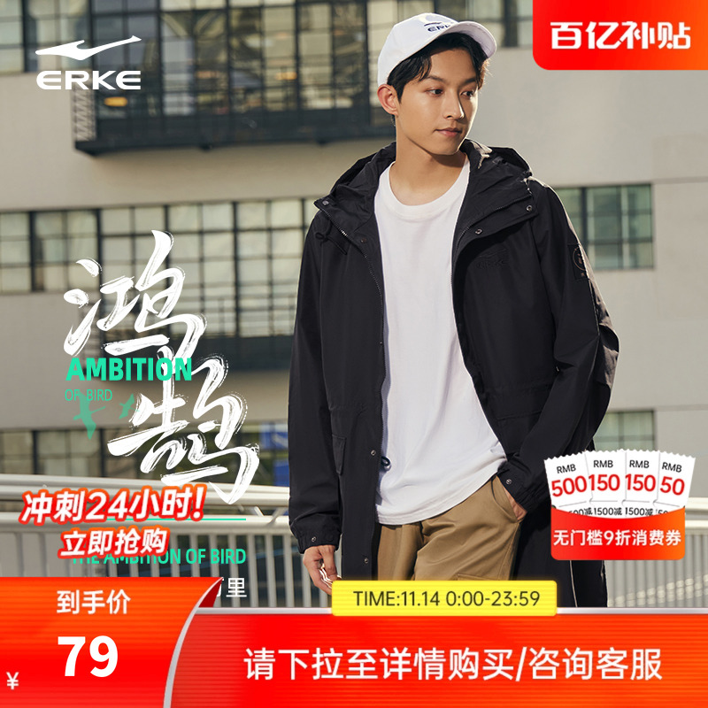 百亿补贴:鸿星尔克秋季男士运动风衣防泼水防风日常运动防风保暖外套男款