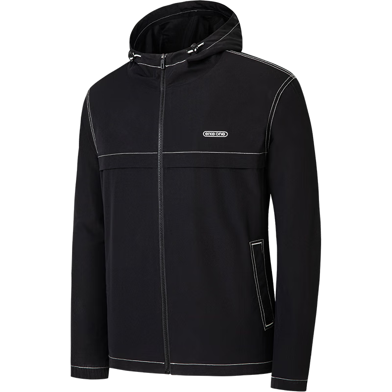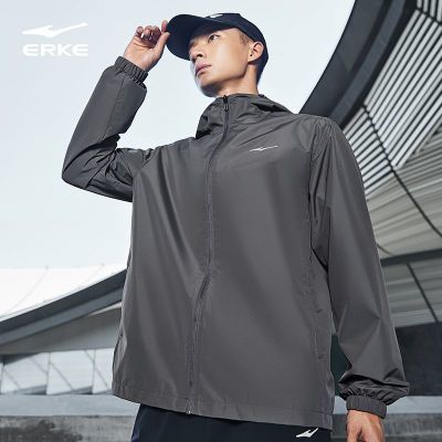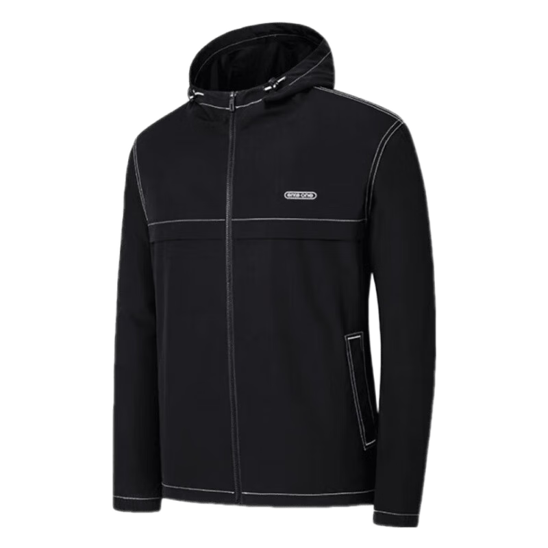 鸿星尔克防泼水运动风衣外套男春季纯色连帽夹克运动健身休闲上衣服