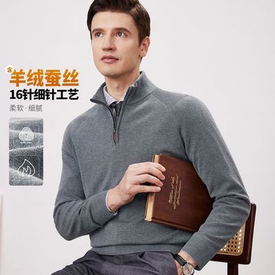 百亿补贴:【羊绒+蚕丝】杉杉半拉链立领毛衣男秋冬保暖打底套头男士针织衫