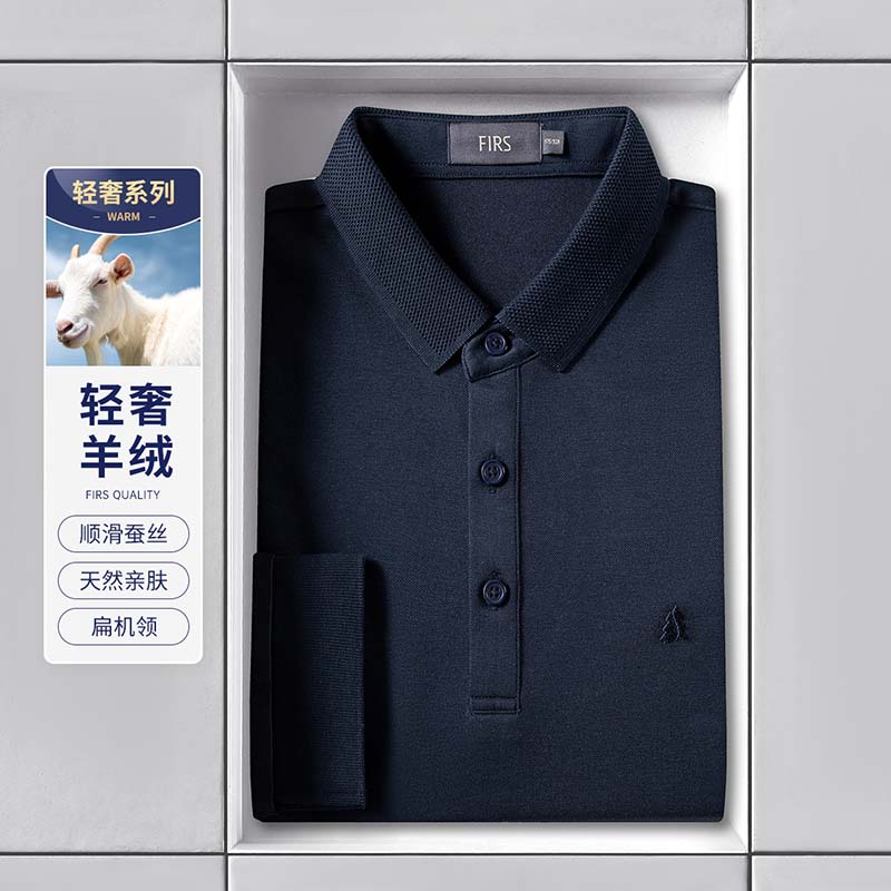 杉杉【轻暖羊绒】长袖T恤男翻领POLO领含棉桑蚕丝春秋亲肤柔软打底衫
