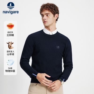 百亿补贴:[抑菌]Navigare意大利小帆船秋冬长袖圆领针织衫男士羊绒保暖毛衣