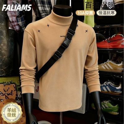百亿补贴:FALIAMS高档冬季羊绒蚕丝德绒半高领打底衫男加绒青年保暖长袖t恤