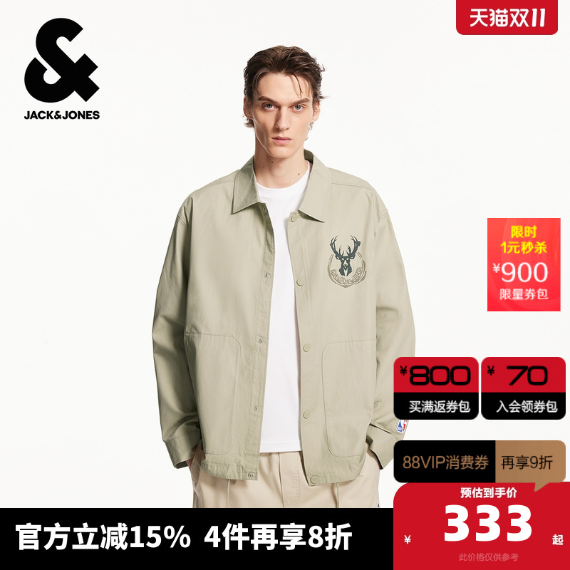E11卡其色 165/88A/XS 杰克琼斯奥特莱斯夹克NBA联名款男装夏季新款休闲翻领外套上衣