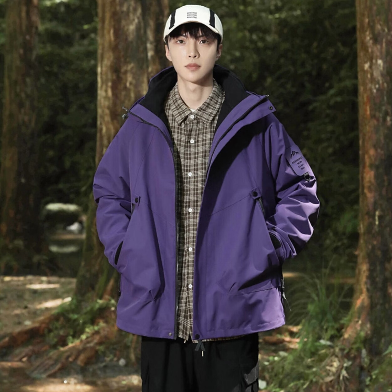 锐图森夹克外套四季百搭单层冲锋衣男女同款户外连帽运动防风防水登山服 紫色 XL(建议150-170斤)