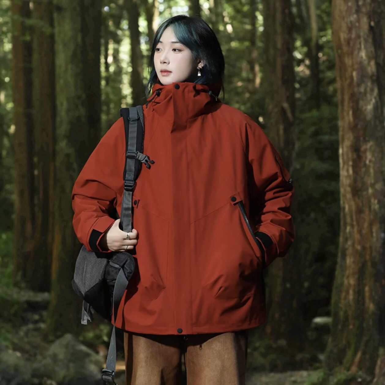锐图森夹克外套四季百搭单层冲锋衣男女同款户外连帽运动防风防水登山服 朱雀红 XL(建议150-170斤)
