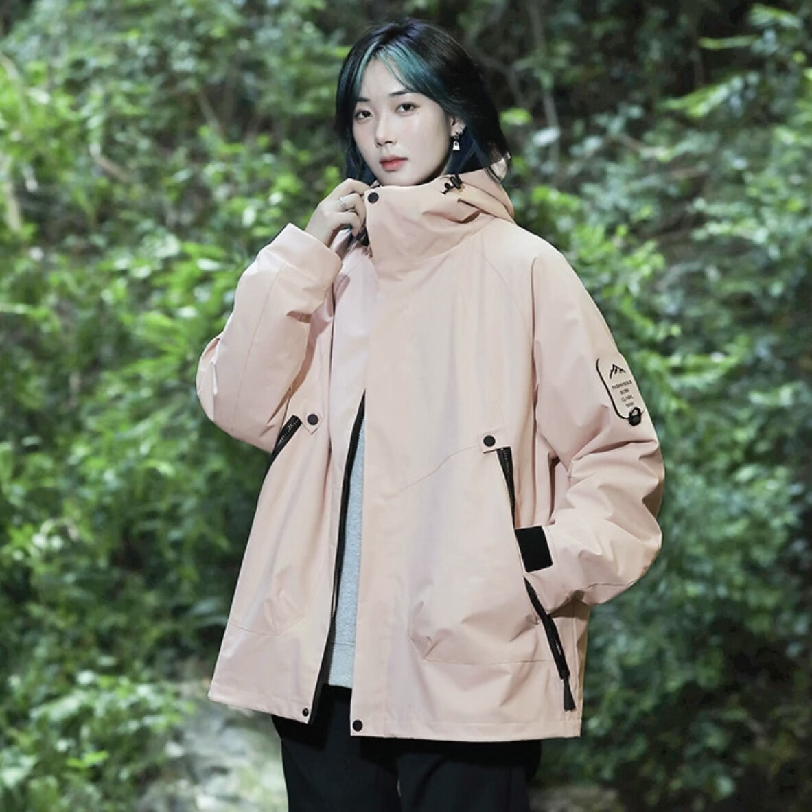 锐图森夹克外套四季百搭单层冲锋衣男女同款户外连帽运动防风防水登山服 冰雾粉 XL(建议150-170斤)