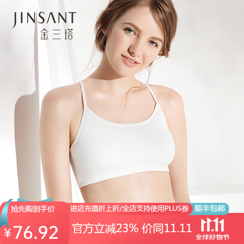 金三塔抹胸100%桑蚕丝防走光吊带抹胸有胸垫2NZF4B405 白色有胸垫810002 M
