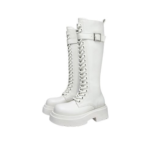 米白色 34 【迪丽热巴同款】MIO米奥冬加绒保暖长筒靴骑士酷飒瘦瘦靴烟筒靴