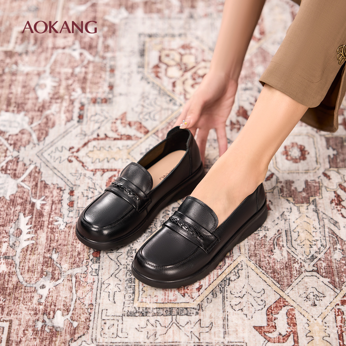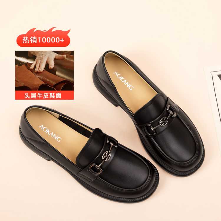 黑1254424001B 35 奥康 女鞋2025秋季舒软鞋妈妈平底乐福鞋休闲豆豆鞋单鞋