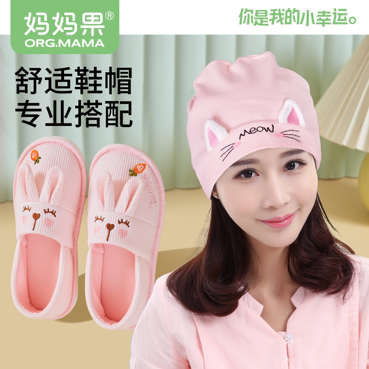 妈妈果产后孕妇鞋坐月子帽子秋季冬11月份10纯棉产妇头巾发带防风