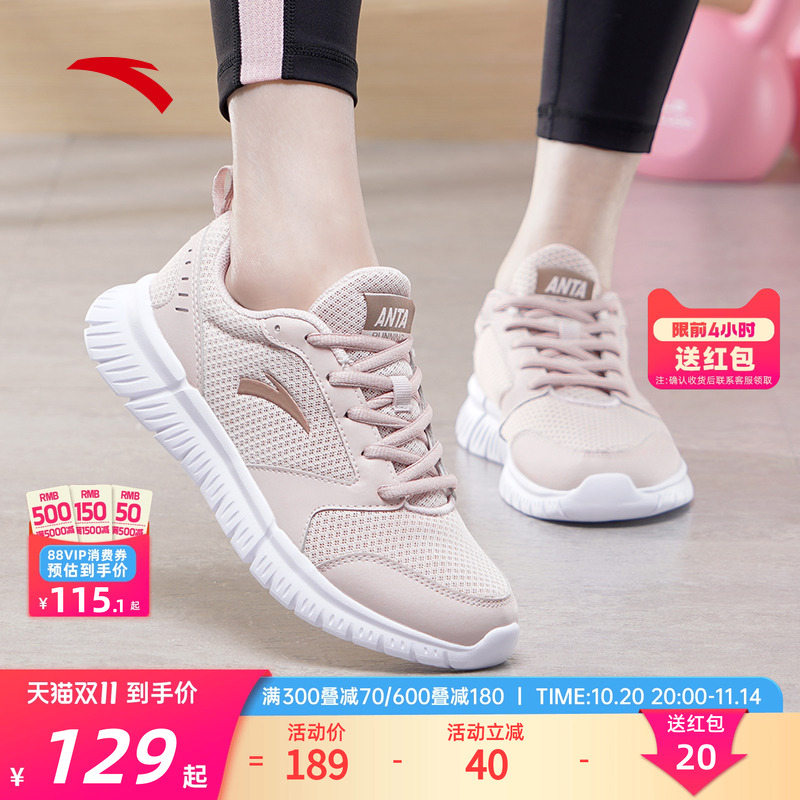 安踏运动鞋女款秋季新款官方正品轻便网面女跑步鞋妈妈软底不累脚