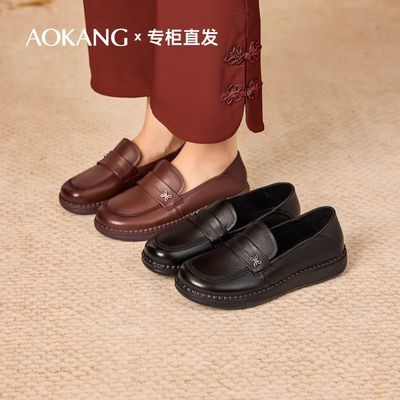 百亿补贴:奥康真皮单鞋妈妈鞋春秋款中年女鞋软底防滑老人皮鞋套脚平底舒适