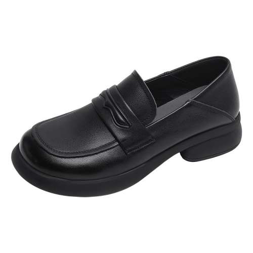 黑色 35 日泰牛皮乐福鞋女单鞋厚底妈妈鞋