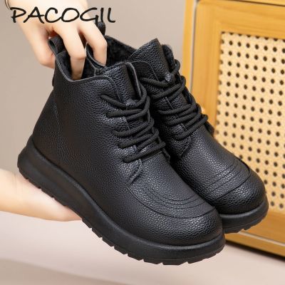 百亿补贴:Pacogil2025冬季新款平底马丁靴休闲妈妈鞋加绒保暖软底小短靴