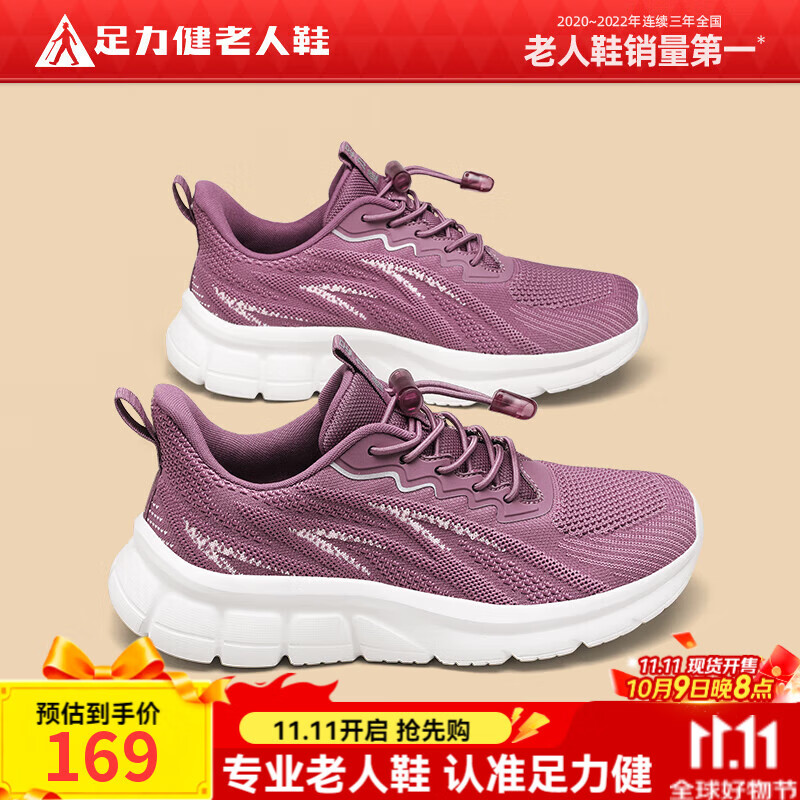 足力健防滑老人鞋女春秋季妈妈鞋透气网面鞋中老年户外休闲运动鞋