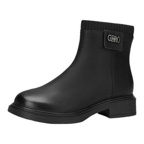 黑色 35 大东妈妈鞋女鞋2025年冬季新款休闲粗跟中跟侧拉链圆头饰扣D1828