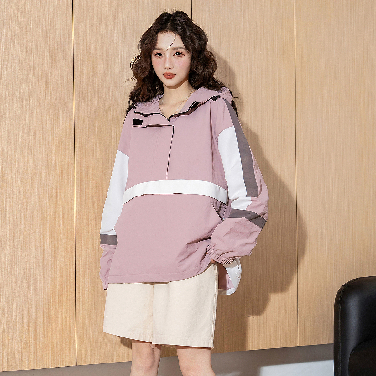 藏青 S 唐狮秋季新款工装外套女撞色拼接