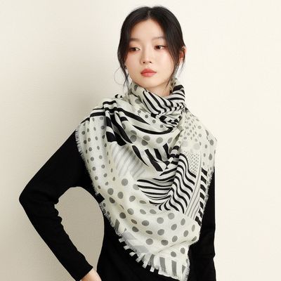 百亿补贴:丝界新款100%羊毛高级时尚波点印花大披肩女士百搭保暖羊毛围巾