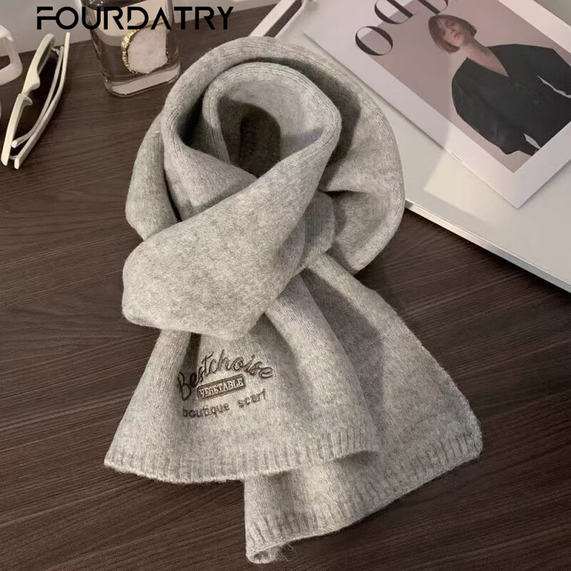 FOURDATRY连帽披肩帽子围巾一体两件套纯色保暖秋冬季两用针织斗篷百搭时尚 刺绣围巾-灰色