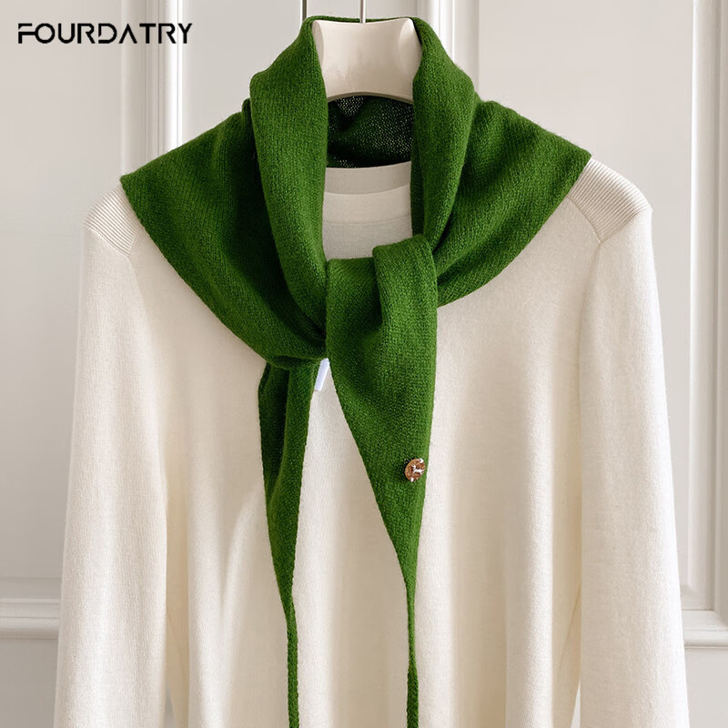 FOURDATRY韩系针织三角巾披肩外搭高级感女个性装饰百搭多功能百变保暖围脖 绿色