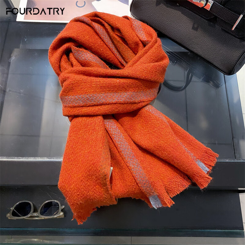 FOURDATRY100%羊毛冬季保暖围巾女士披肩两用柔软加厚时尚百搭围脖女 橘色 190*35cm