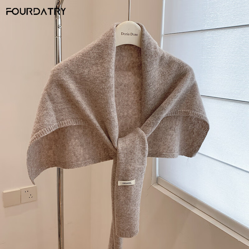 FOURDATRY新款纯色针织外搭披肩春秋冬季百搭围巾高级感全羊毛T型披肩 卡其