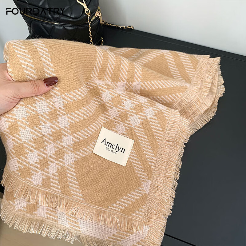 FOURDATRY秋冬新款英伦格子羊毛围巾女欧美高级感时尚休闲披肩保暖围脖 卡其