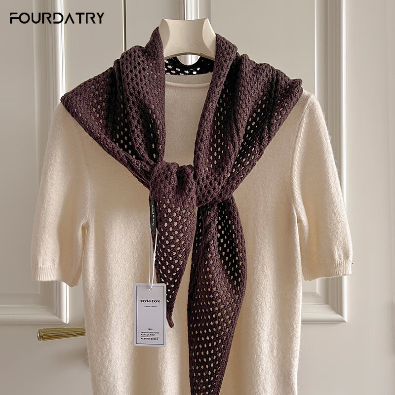 FOURDATRY米色镂空针织三角巾披肩外搭女坎肩围脖高级感半身裙腰巾腰封围巾 深咖