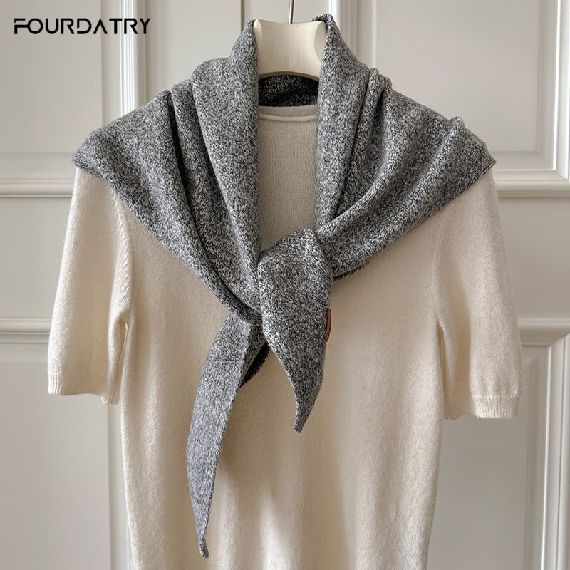 FOURDATRY简约气质含羊毛三角披肩多用围巾秋冬新款纯色百搭时髦穿搭围脖 浅灰