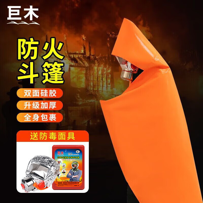 百亿补贴:巨木防火斗篷披风逃生衣高层家用自救呼吸器全面具消防灭火毯火灾神器 防火斗篷成人款+消防面具