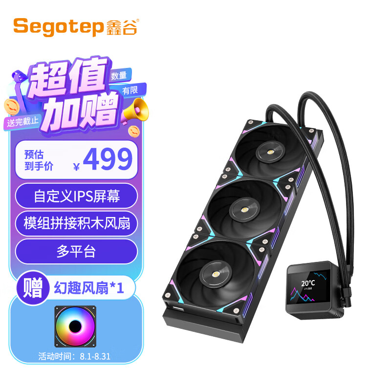 鑫谷(segotep)昆仑MU-360 ARGB一体式水冷CPU散热器(自定义IPS屏幕/模组拼接积木风扇/兼容Intel/AMD多平台)