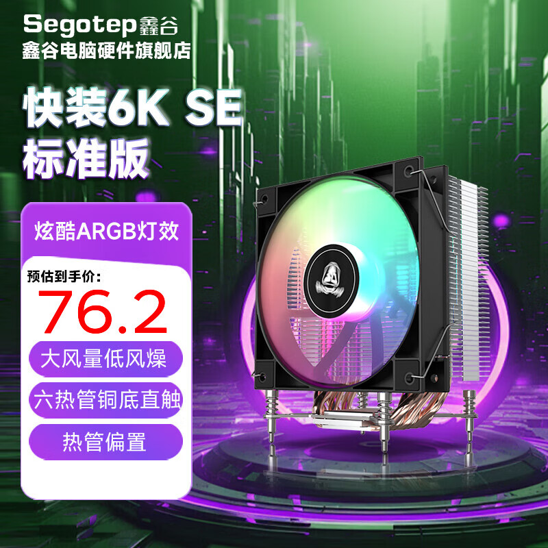 鑫谷散热器 风冷散热器 CPU散热器 石墨烯散热片 散热器六铜管 双塔双风扇 单塔散热器 ARGB神光同步 快装K6 SE ARGB 黑色「intel专用」