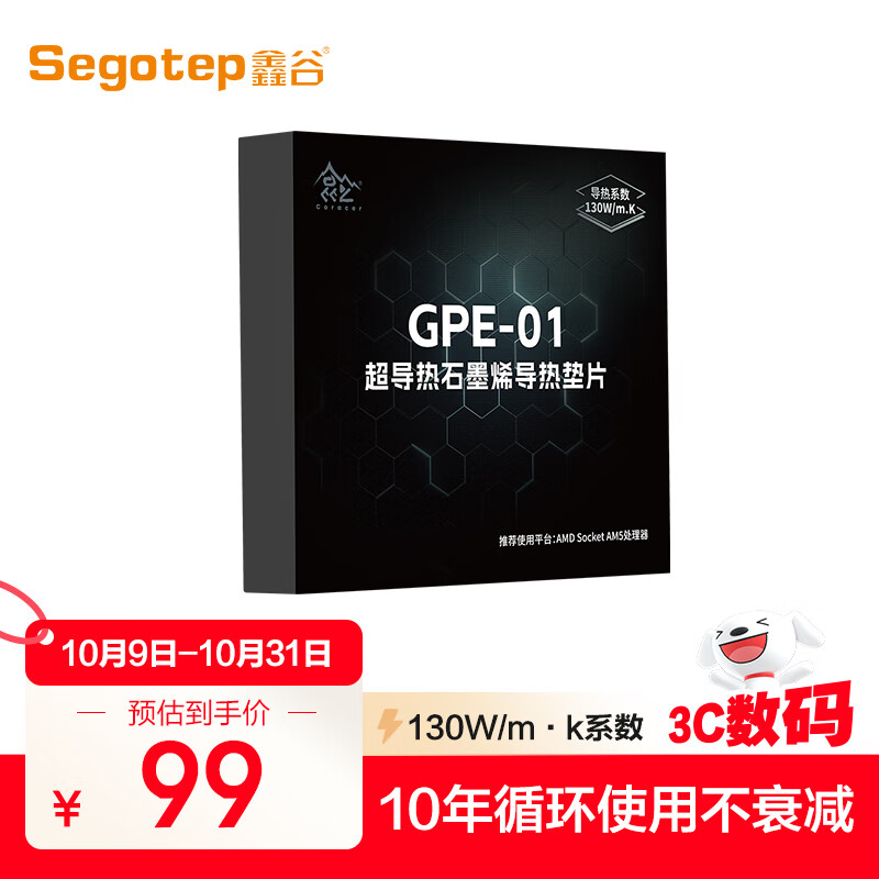 鑫谷(segotep)昆仑GPE-01超导热石墨烯垫片(130W/m·k系数/10年循环使用不衰减/AMD平台CPU散热器专用非硅脂)