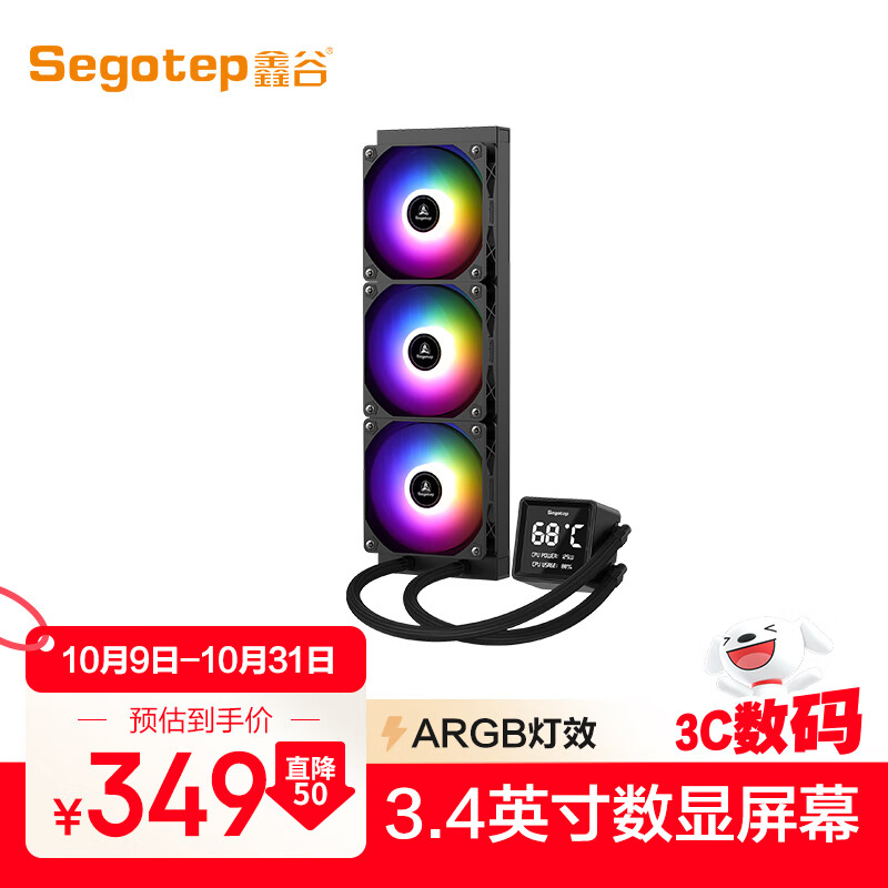 鑫谷(segotep)冰智360带屏一体式水冷CPU散热器(3.4英寸数显屏幕/ARGB灯效/兼容AMD/AM5/intel 20XX平台)