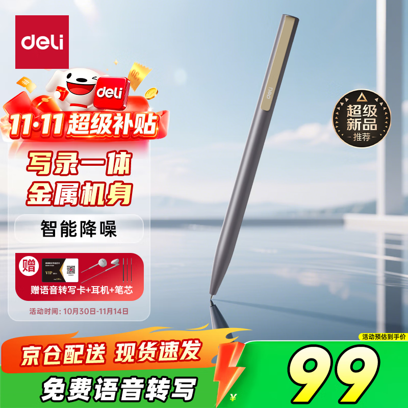得力录音笔 专业录音神器取证设备机记录仪随身便携录音笔笔型超长待机智能降噪会议写录一体8G MP411