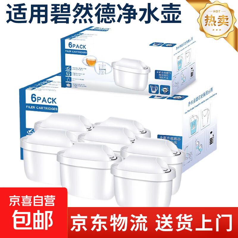 【已售100W+】通用Brita碧然德滤芯净水壶家用净水壶滤芯过滤壶净水器通用三代滤芯自来水过滤器 6支升级版滤芯