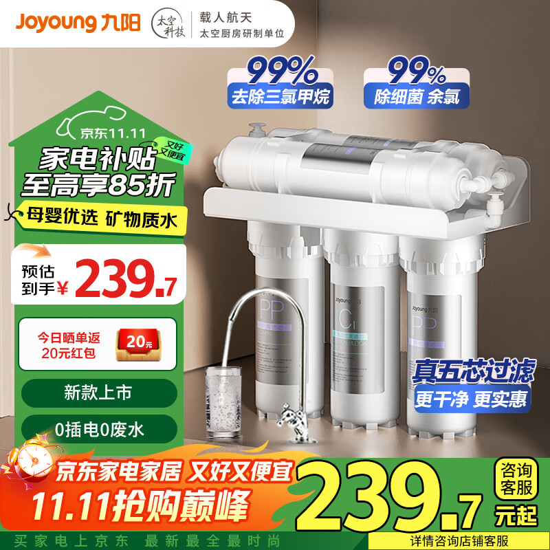 九阳净水器家用直饮前置过滤器厨房自来水净化器厨下式超滤净水机