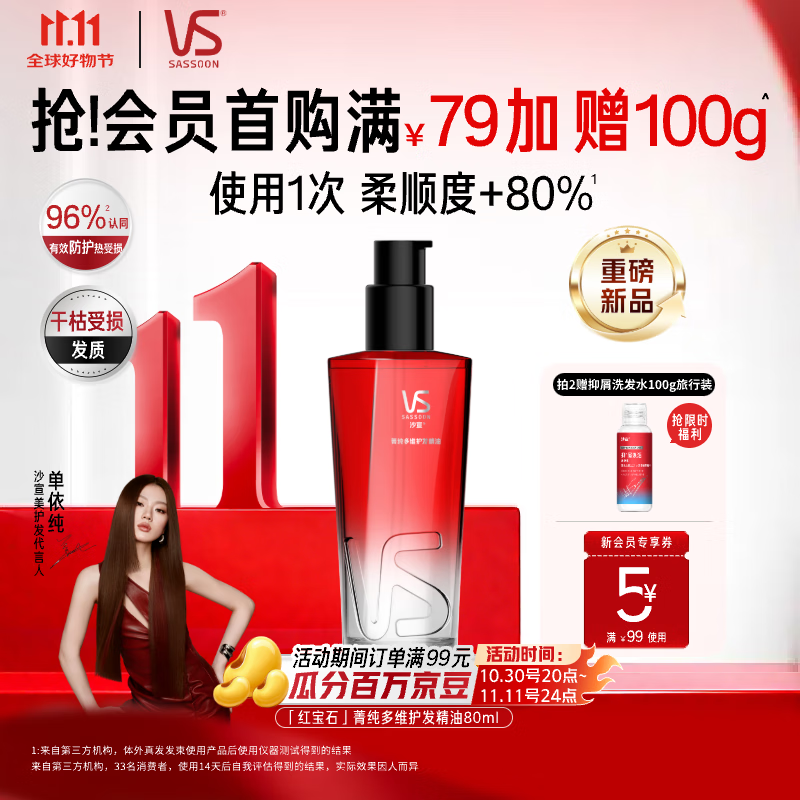 沙宣(VS)【重磅新品】红宝石菁纯多维护发精油80ml摩洛哥精油柔顺韧发男女