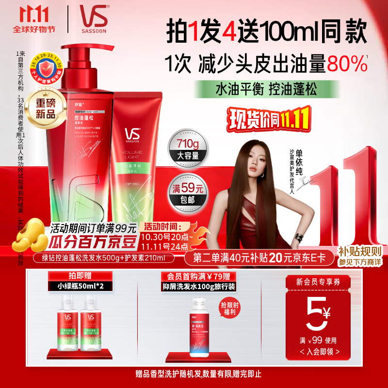 沙宣绿钻控油蓬松洗发水500g+护发素210ml+50ml*2平衡水油洗护套装