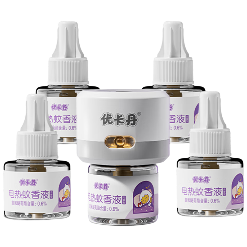 优卡丹基孔肯雅热 电蚊香液驱蚊液灭蚊大容量45mlx5瓶+1器防蚊 全家适用