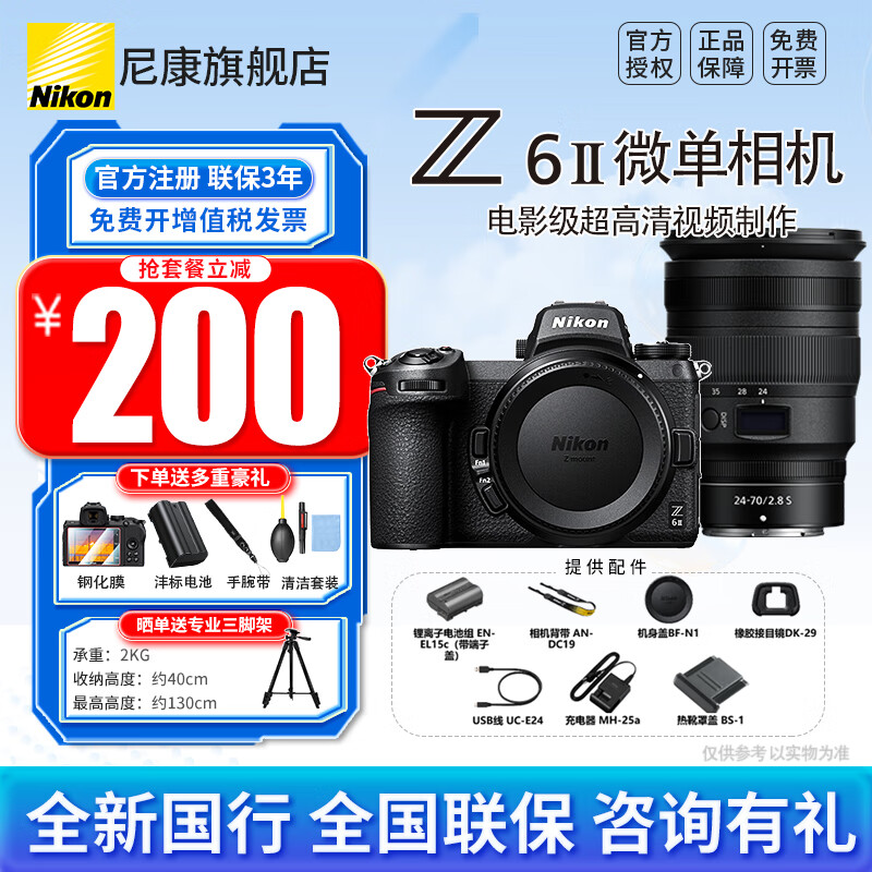 尼康(Nikon)【全新国行正品】 Z 6II/z62单机套机全画幅微单相机Z6二代4K高清数码照相机vlogz62单机 z62 Z24-70mm f/2.8 S 变焦镜头 官方标配【下单送豪华大礼包+晒单三脚架】