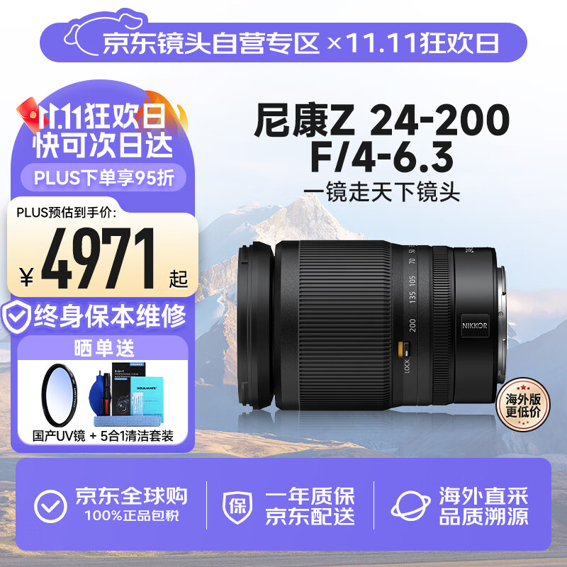 尼康(Nikon)尼克尔 Z 24-200mm f/4-6.3 微单镜头 VR 全画幅长焦变焦镜头 尼克尔微单相机镜头 专业级 拍鸟