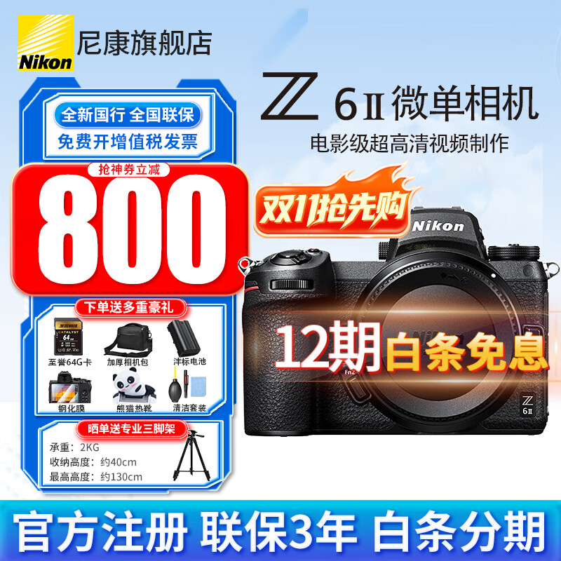 尼康(Nikon)【全新国行正品】 Z 6II/z62单机套机全画幅微单相机Z6二代4K高清数码照相机vlogz62单机 z62单机/全新未开封独立包装单机【12期分期】 官方标配【下单送豪华大礼包+晒单三脚架】