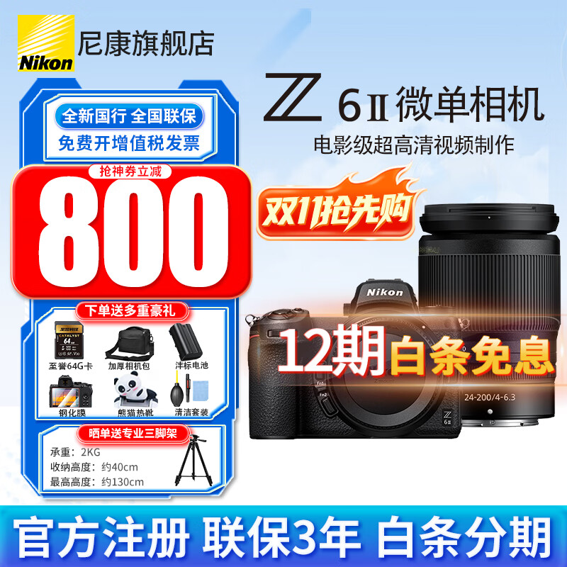 尼康(Nikon)【全新国行正品】 Z 6II/z62单机套机全画幅微单相机Z6二代4K高清数码照相机vlogz62单机 z62 24-200/4-6.3镜头【12期分期 官方标配【下单送豪华大礼包+晒单三脚架】