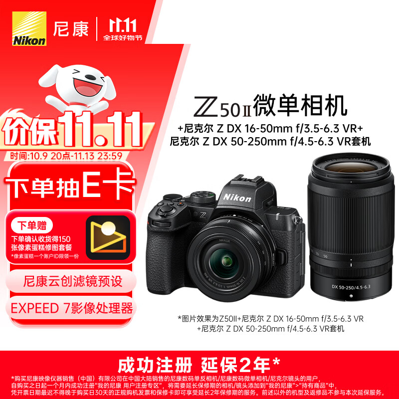 尼康(Nikon)【价保11.11】Z50II(Z50ii/ Z502 / Z50二代 )入门级微单套机 (Z DX 16-50mm+50-250mm 双镜头)