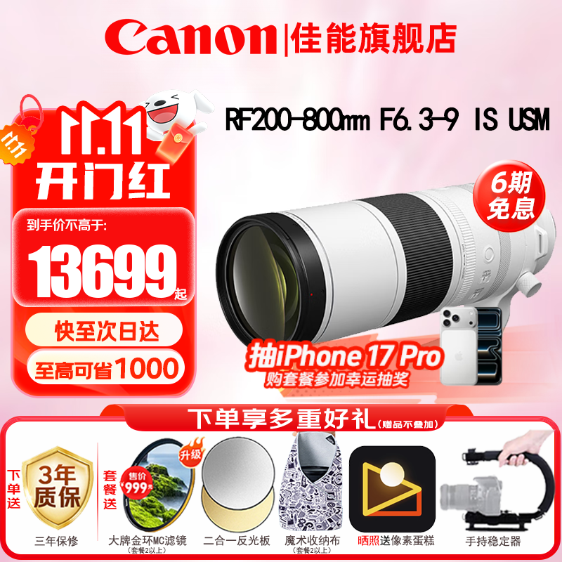 佳能(Canon)RF全画幅微单镜头 专业变焦镜头打鸟 适合R7 RP R10 R5 R6二代 R8 R50 R100微单相机 RF 200-800mm IS USM超远摄变焦 套餐三【升级卡色偏振镜+金环滤镜+补光灯多种滤镜】